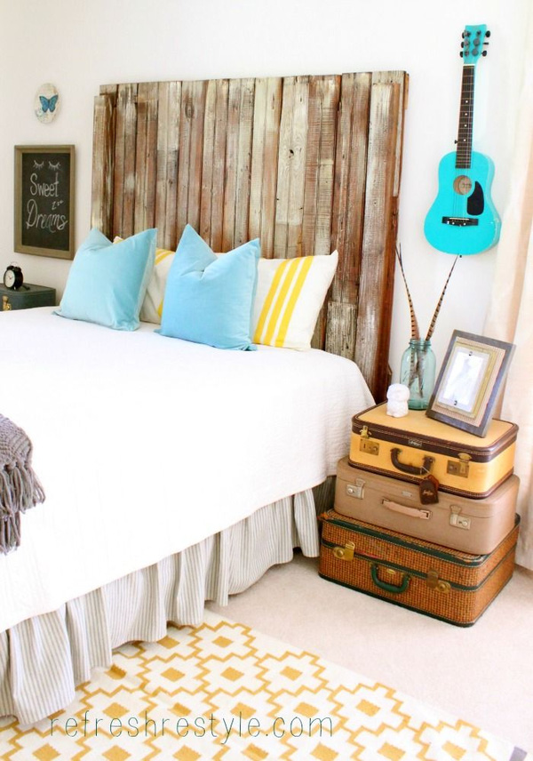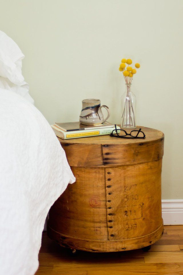 Những chiếc thùng gỗ như thế này bạn có thể kiếm hay đặt làm đều được. Không quá cầu kỳ tô vẽ, nhưng chúng sẽ luôn hút mắt người xem bởi sự đơn giản và mộc mạc mà chúng tạo nên. Tất nhiên, chúng vẫn đáp ứng đủ yêu cầu cho một chiếc tủ đầu giường rồi!