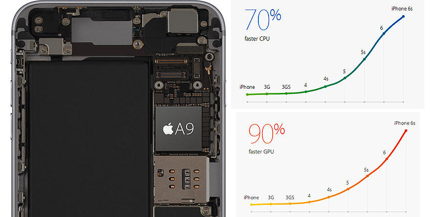 - Chip A9 được nâng cấp trong iPhone 6S Plus đáp ứng nhanh chóng, mượt mà mọi tác vụ đa nhiệm.